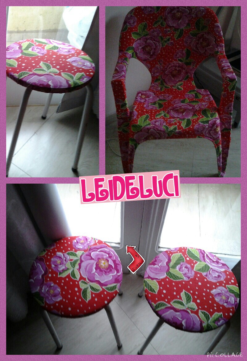 CADEIRA E BANQUINHO FORRADOS COM CHITA E COLA